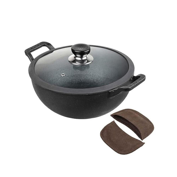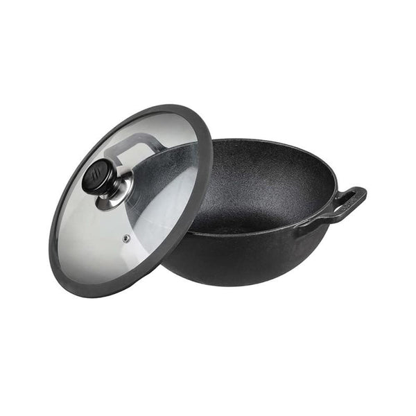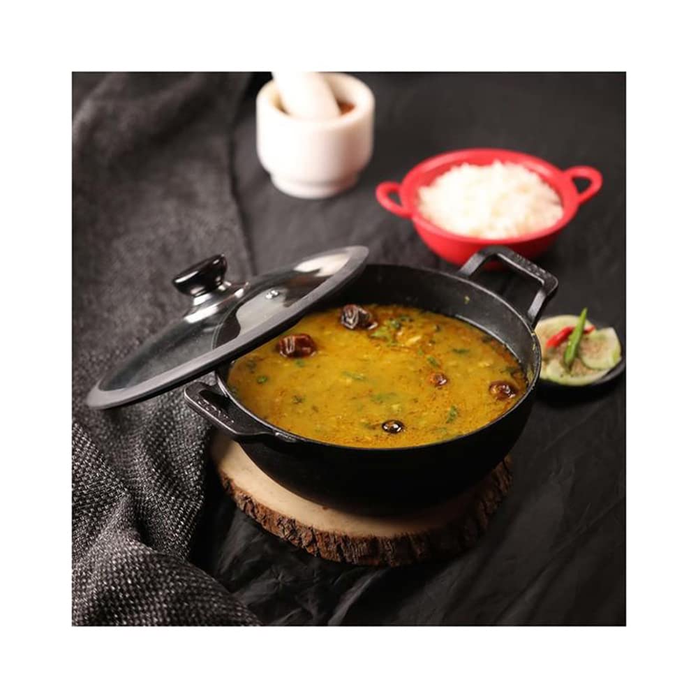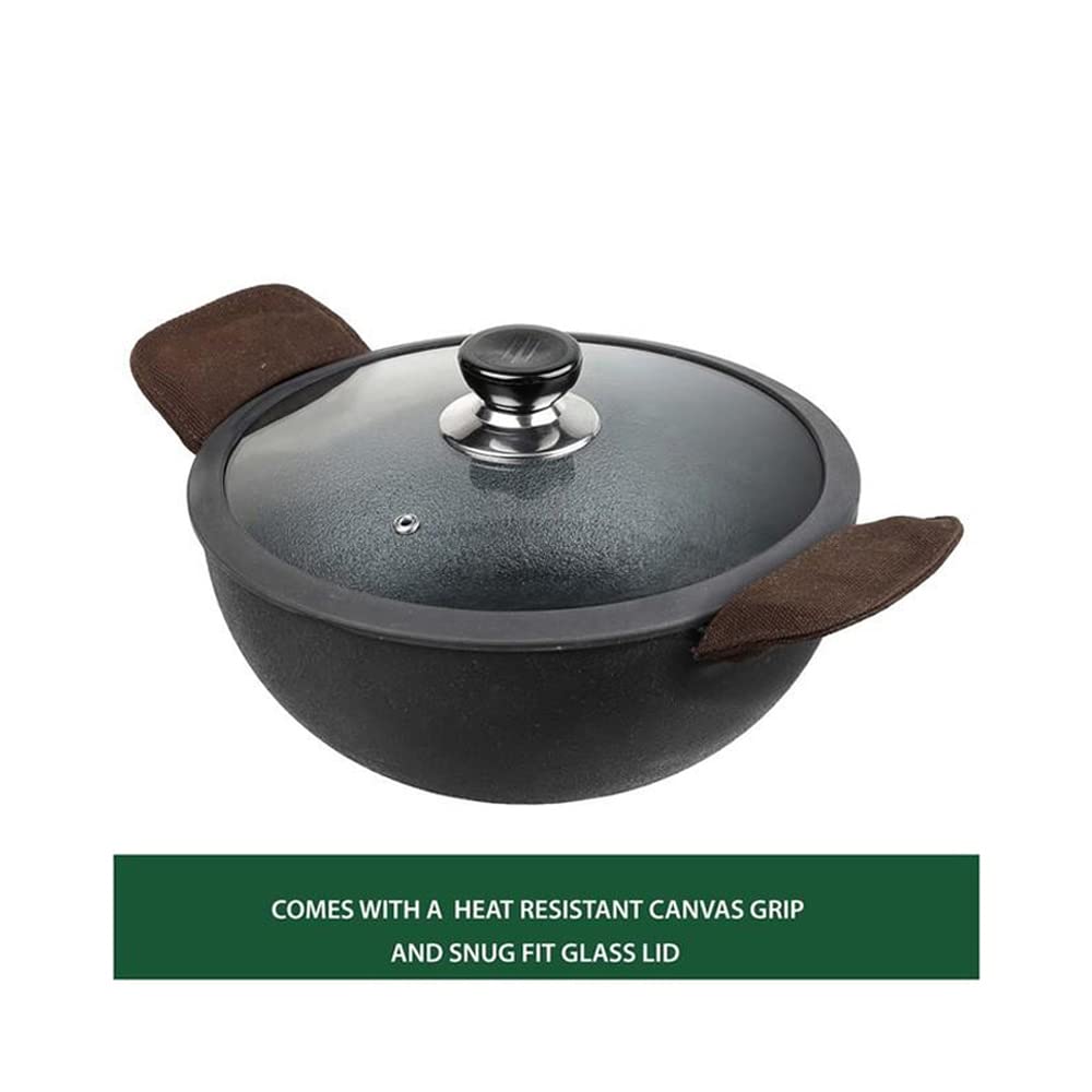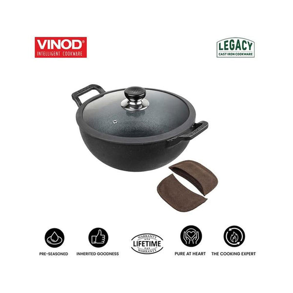 Vinod D Legacy Pre-Seasoned Cast Iron Kadai, 24 cm,Induction Friendly,Black, 1 Piece