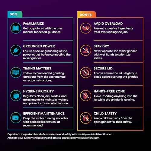 Wipro Elato FMG209 800 Watt Mixer Grinder with 4 Jars,Heavy Duty 100% Copper Ball Bearing Motor with 5 Year Warranty,Superfast Grinding,Clip Lids - Hands Free use, 4 Jars Mixer Grinder 800 Watt,Black