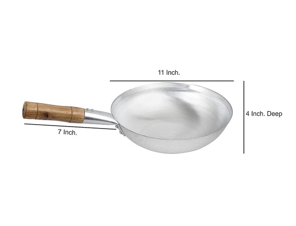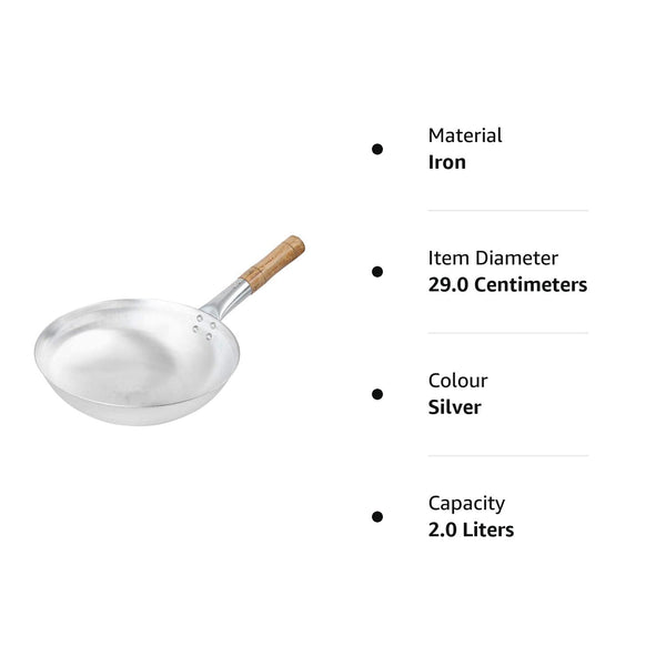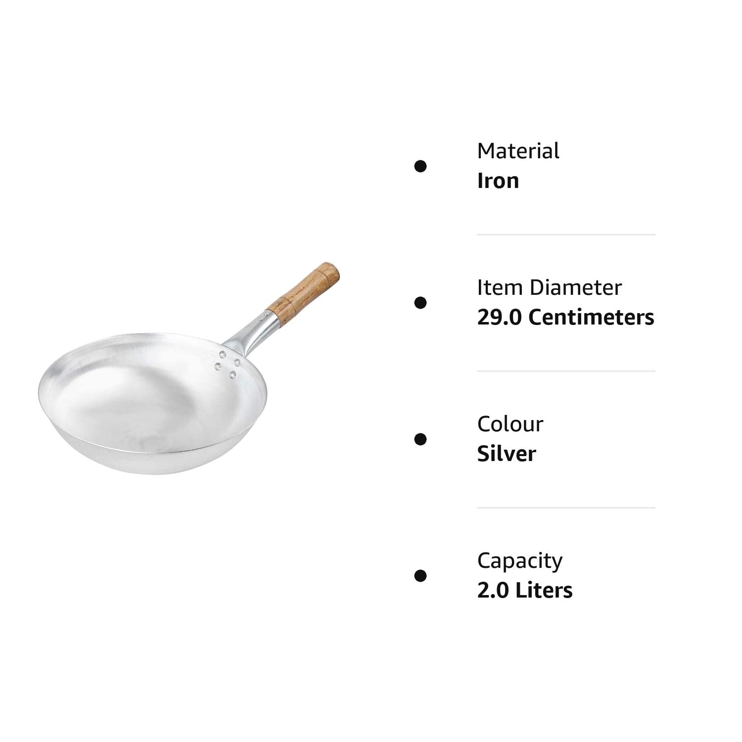 WokHouse Iron Kadhai 11 inches Iron Wok | Chinese Kadhai with Wooden Handle