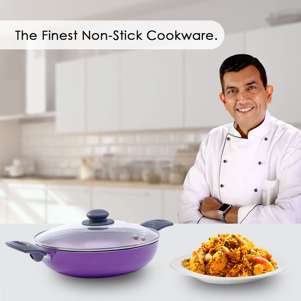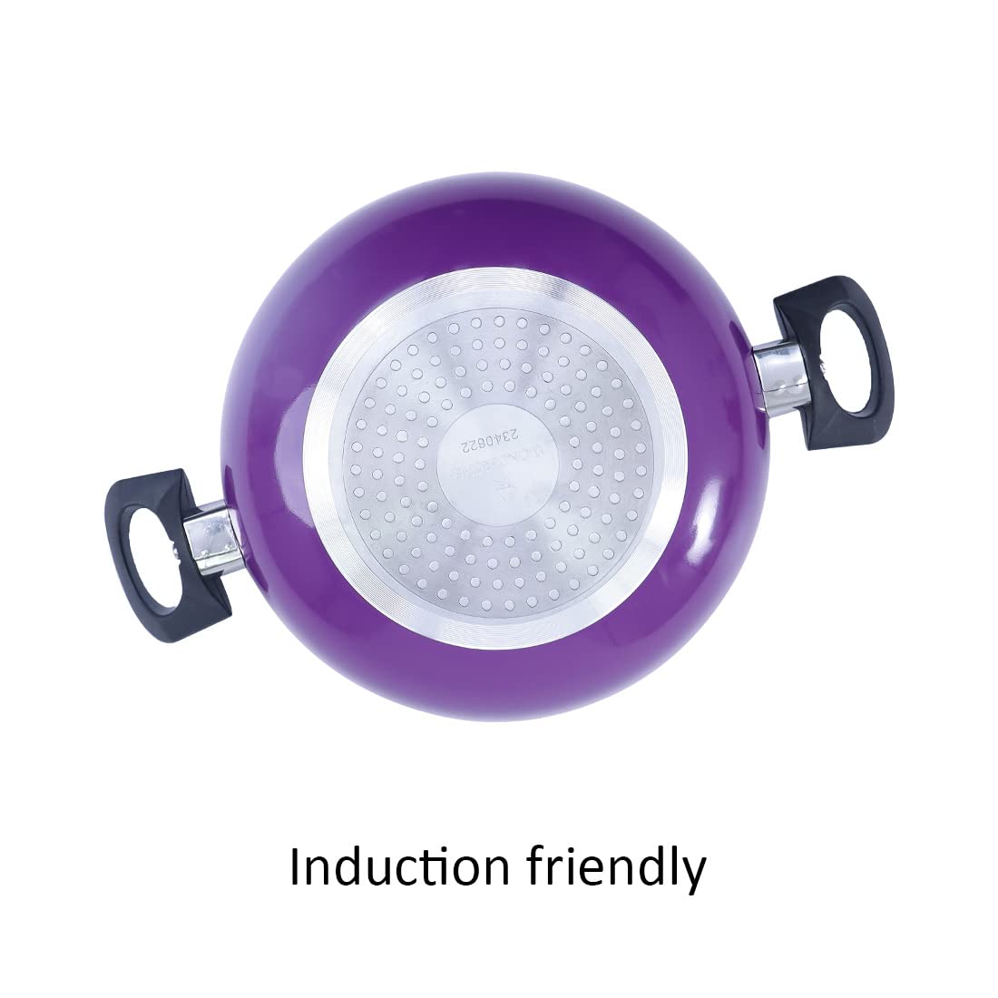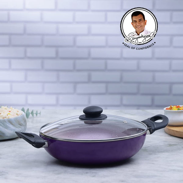 Wonderchef Valencia Non-Stick Kadhai with Glass Lid | Induction Friendly | 2 litres Capacity | Size 24 cm Kadai