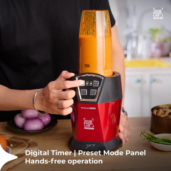 YFL HOME BlendLab Pro 2.0 Mixer Grinder for Kitchen, 1200W Blender with 2 Unbreakable Jars, 100% Copper Motor, Smoothie Maker with Preset Blend Modes, Laser Cut SS Blades | Blender for Smoothies (Red)