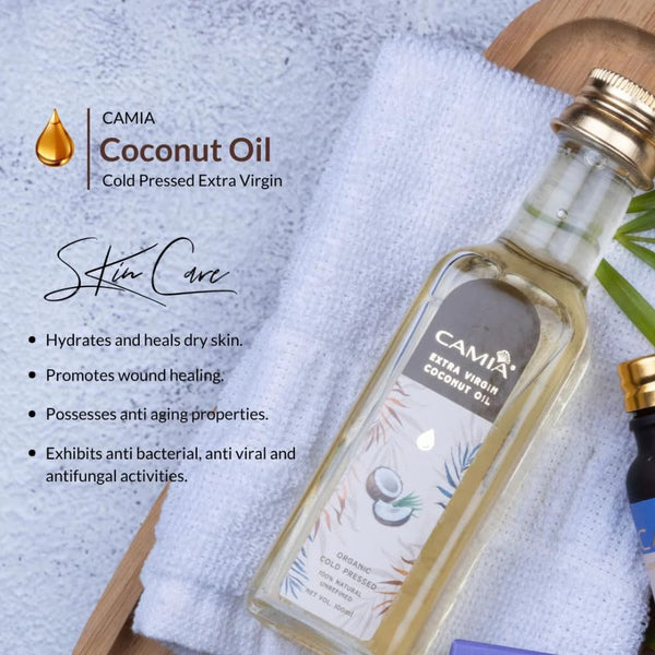 CAMIA Premium Coconut Oil for Skin & Hair | Cold Pressed & Organic Coconut Oil | 100% Pure, Natural, Undiluted, Unrefined Hair Oil | Ideal for Skiin & Hair | Free From Chemicals | 100 ML Glass Bottle