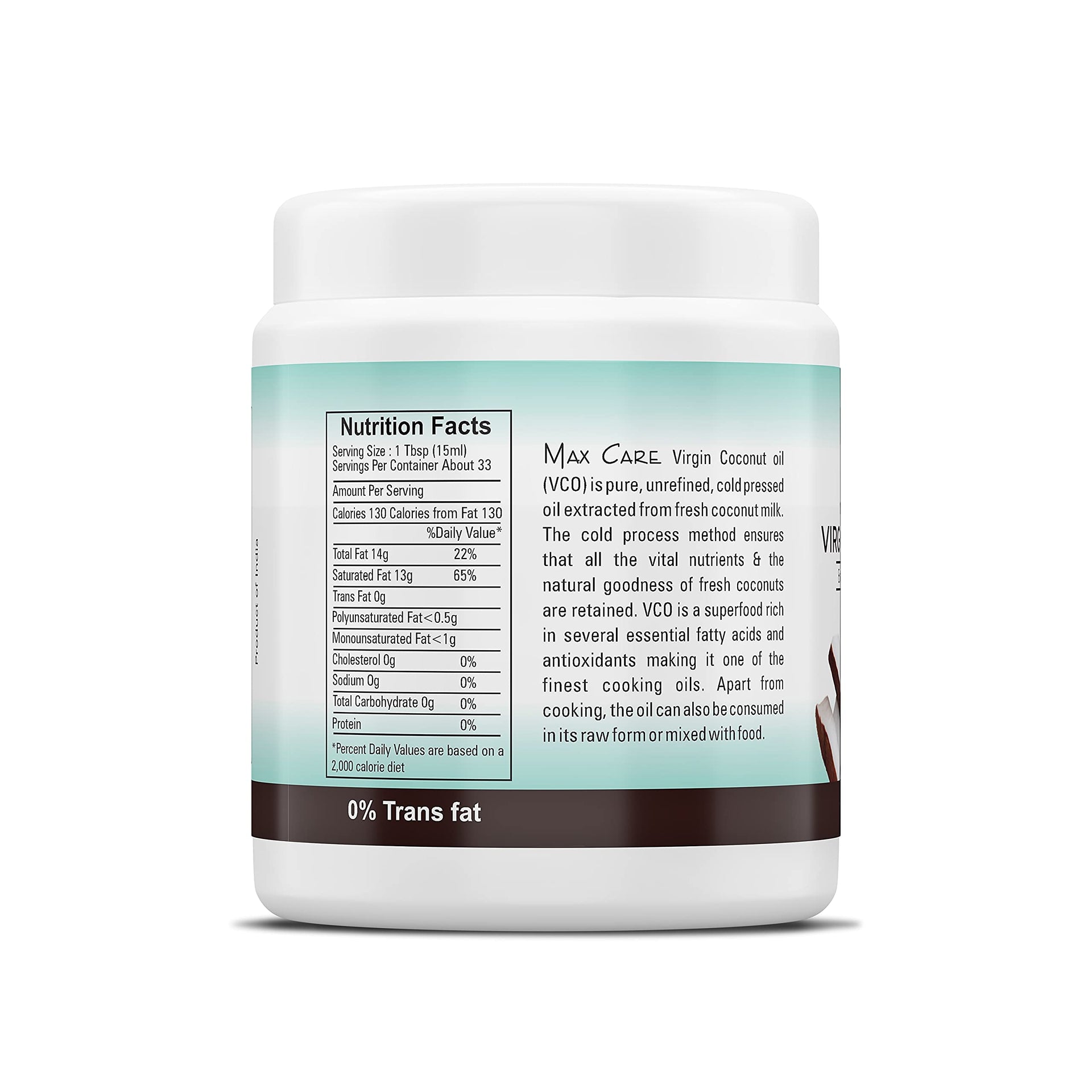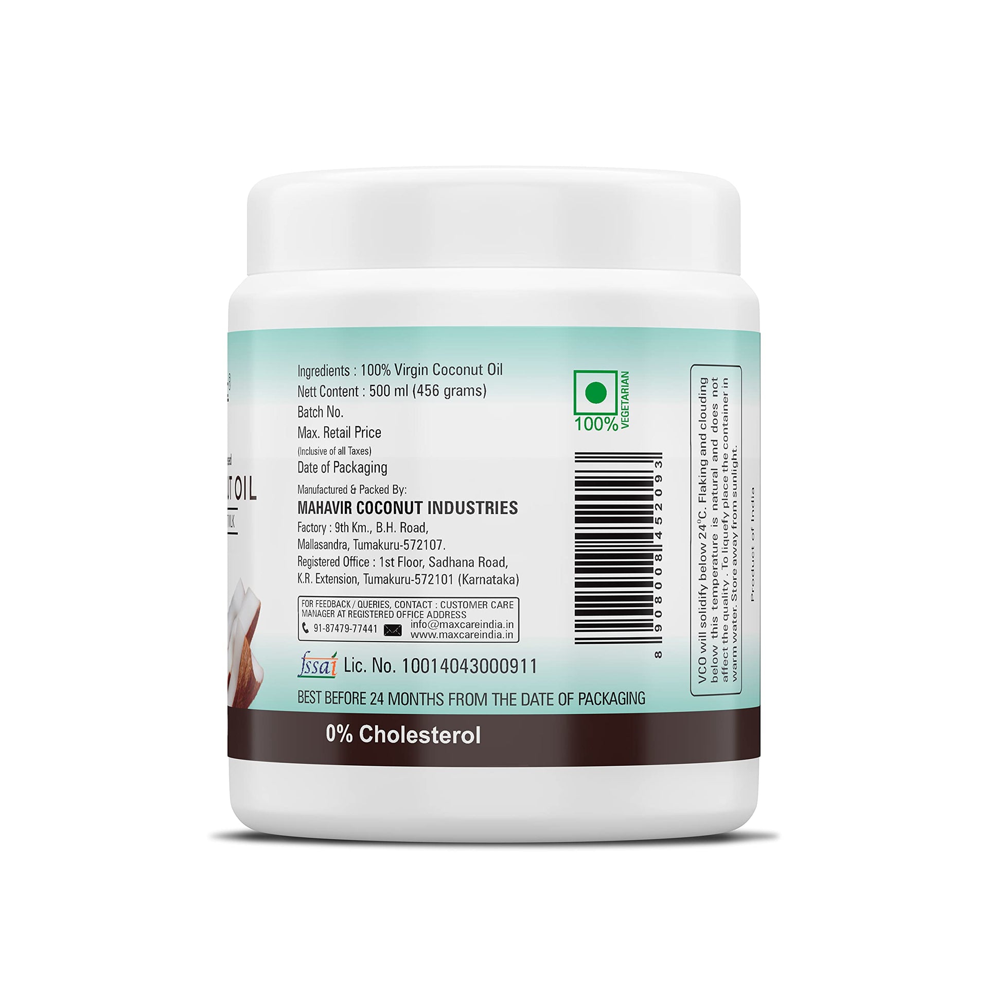 MAX CARE Maxcare Virgin Coconut Oil (Cold Pressed) 500ML Wide Mouth