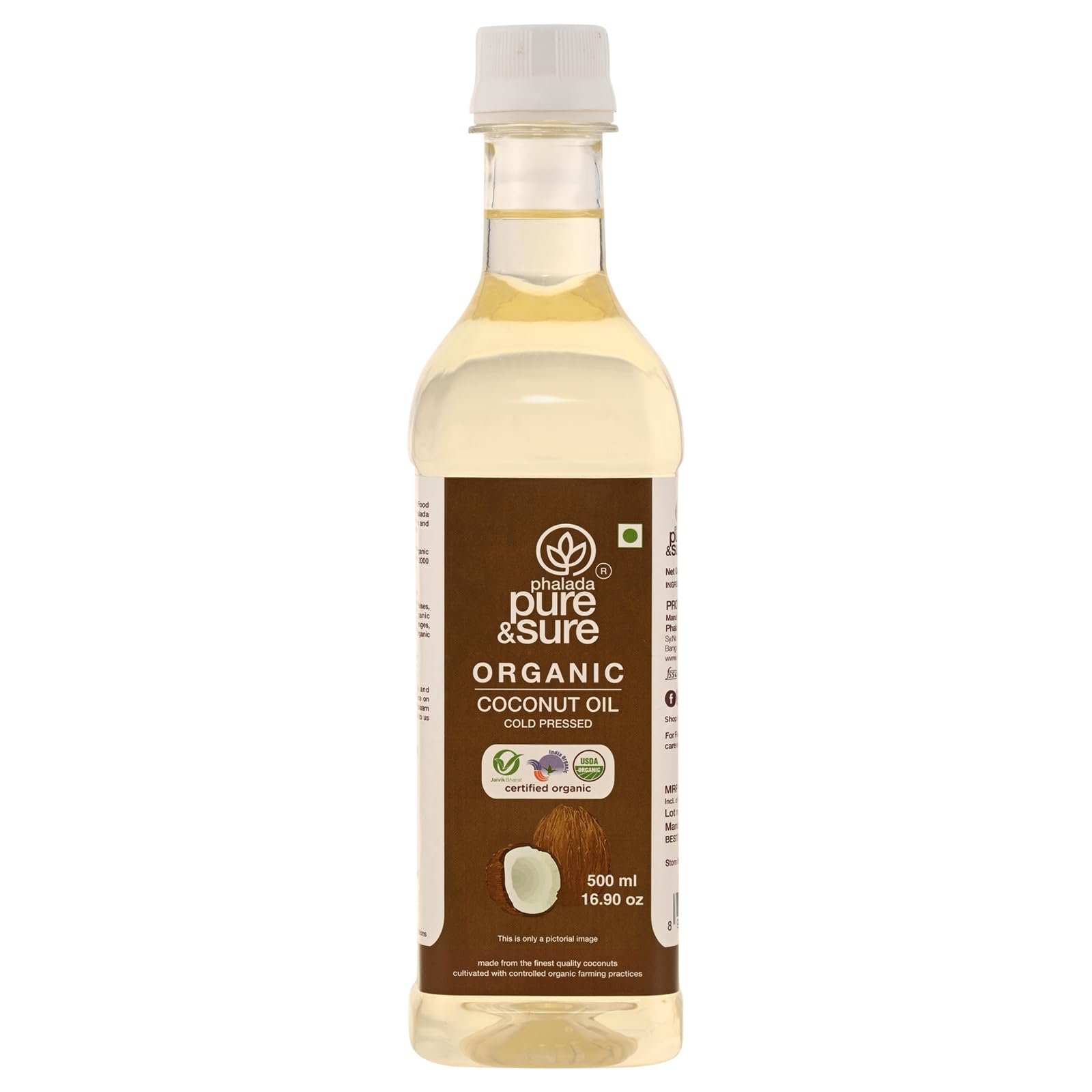 Pure & Sure Cold Pressed Virgin Coconut Oil 500ml | 100% Natural, Organic & Pure Nariyal Tel | Used for Cooking, Skin, Hair,Baby massage| Nutrient Rich & Chemical Free