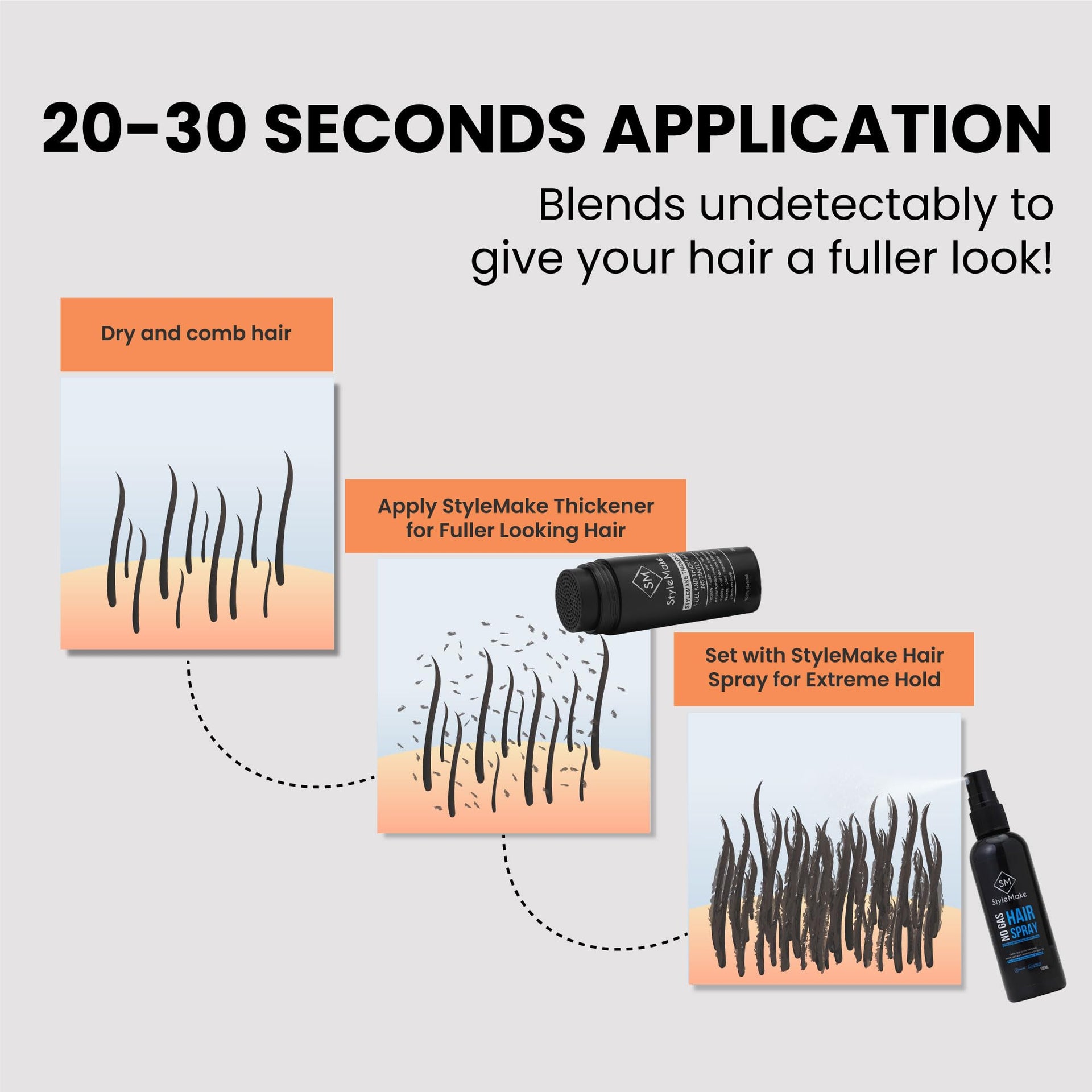 STYLEMAKE Thickener Hair Loss Concealer With Hair Spray - Hair Building Fibers - Hair Fibers For Thin & Fine Hair - Hair Thickening Fibers For Men & Women- Combo Pack (Black) -28 Grams