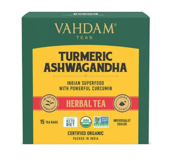 Vahdam Turmeric Ashwagandha Herbal Tea Bags - 15 Units