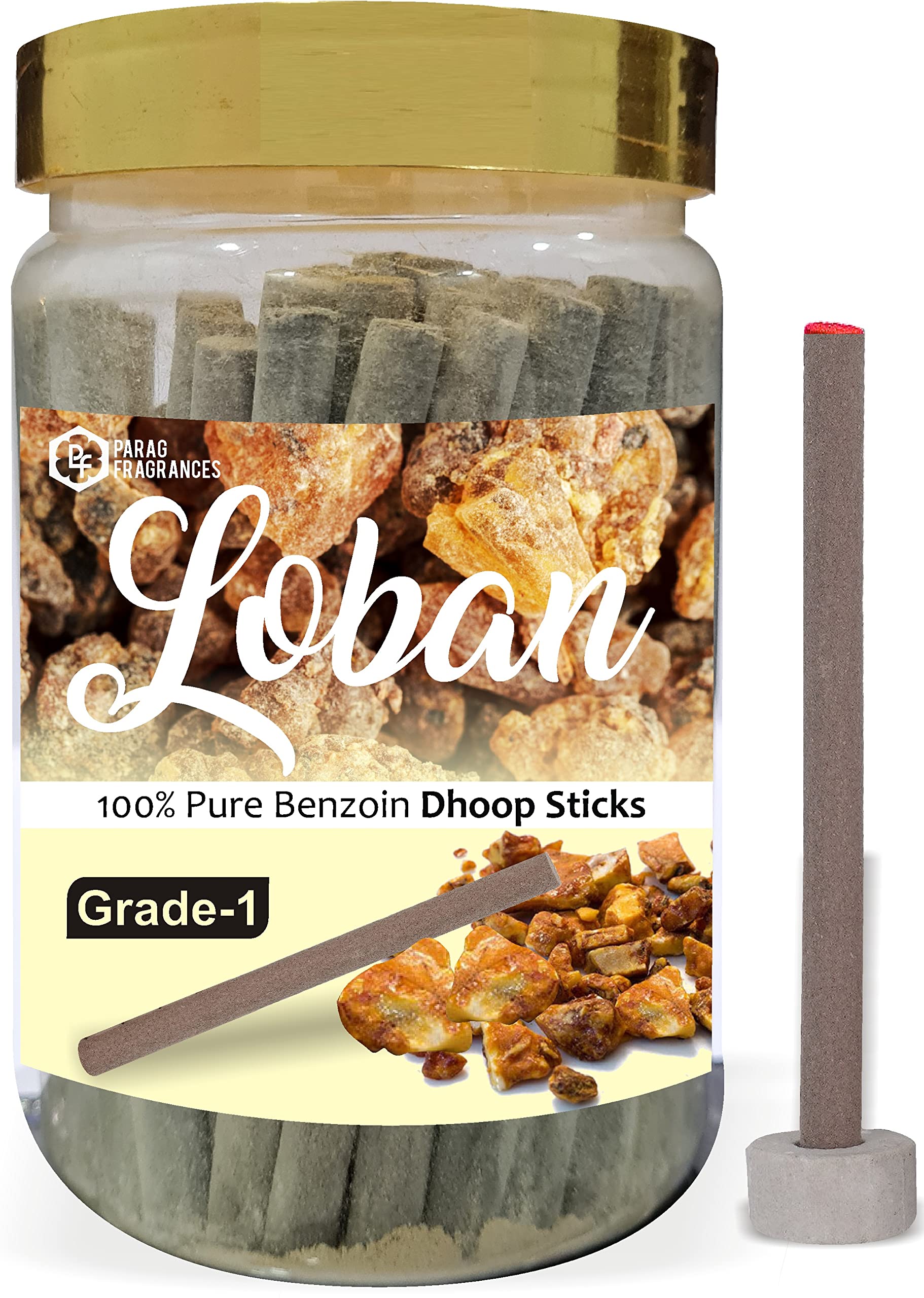 Parag Fragrances Loban Dhoop Sticks/Benzoin Dhoop Batti Grade-1 Jar (Pack of 1 x 200Gm) Long Lasting Perfume for 24 Hours Home Fragrance/Meditation/Dhoop for Pooja/Free Dhoop Holder Inside