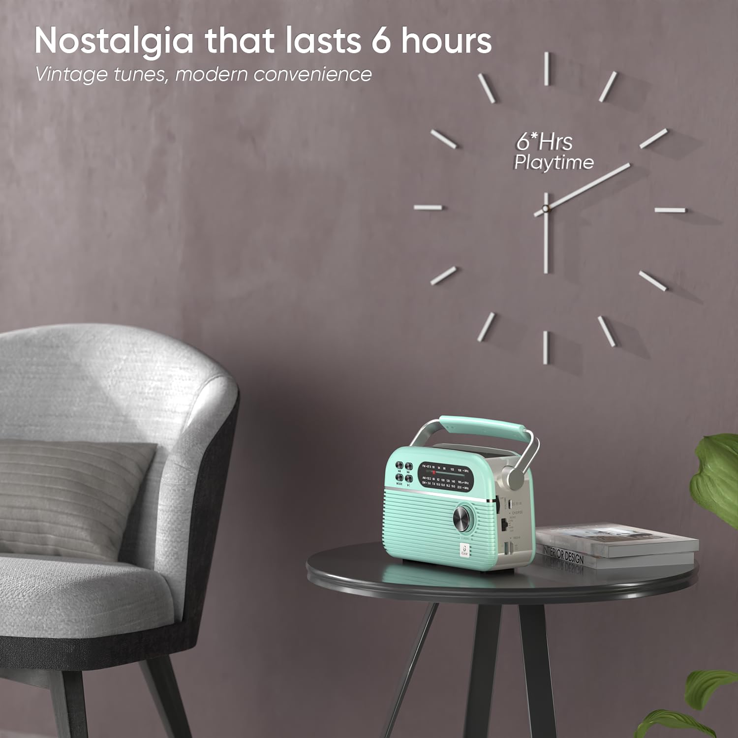 iGear Trinity Solar-Powered MP3 Player & 3-Band Radio with FM/AM/SW, Retro Modern Style, Bluetooth, USB, TF/SD Card, 1200 mAh Rechargeable Battery, Solar Charger, 1 Year Replacement Warranty (Blue)