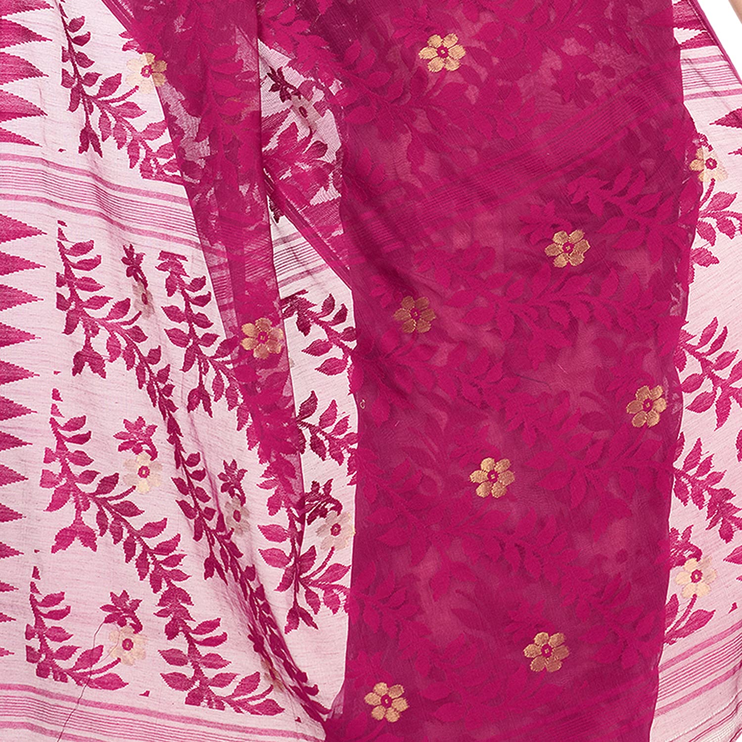 Db Desh Bidesh Women's Jamdani Cotton Saree Without Blouse Piece (Db220622Jamdanitant_Plum Jam White)