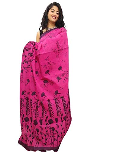 Hand block Printed Cotton mulmul Sari With Blouse Piece (MULTI-CO LOUR_Free Size)