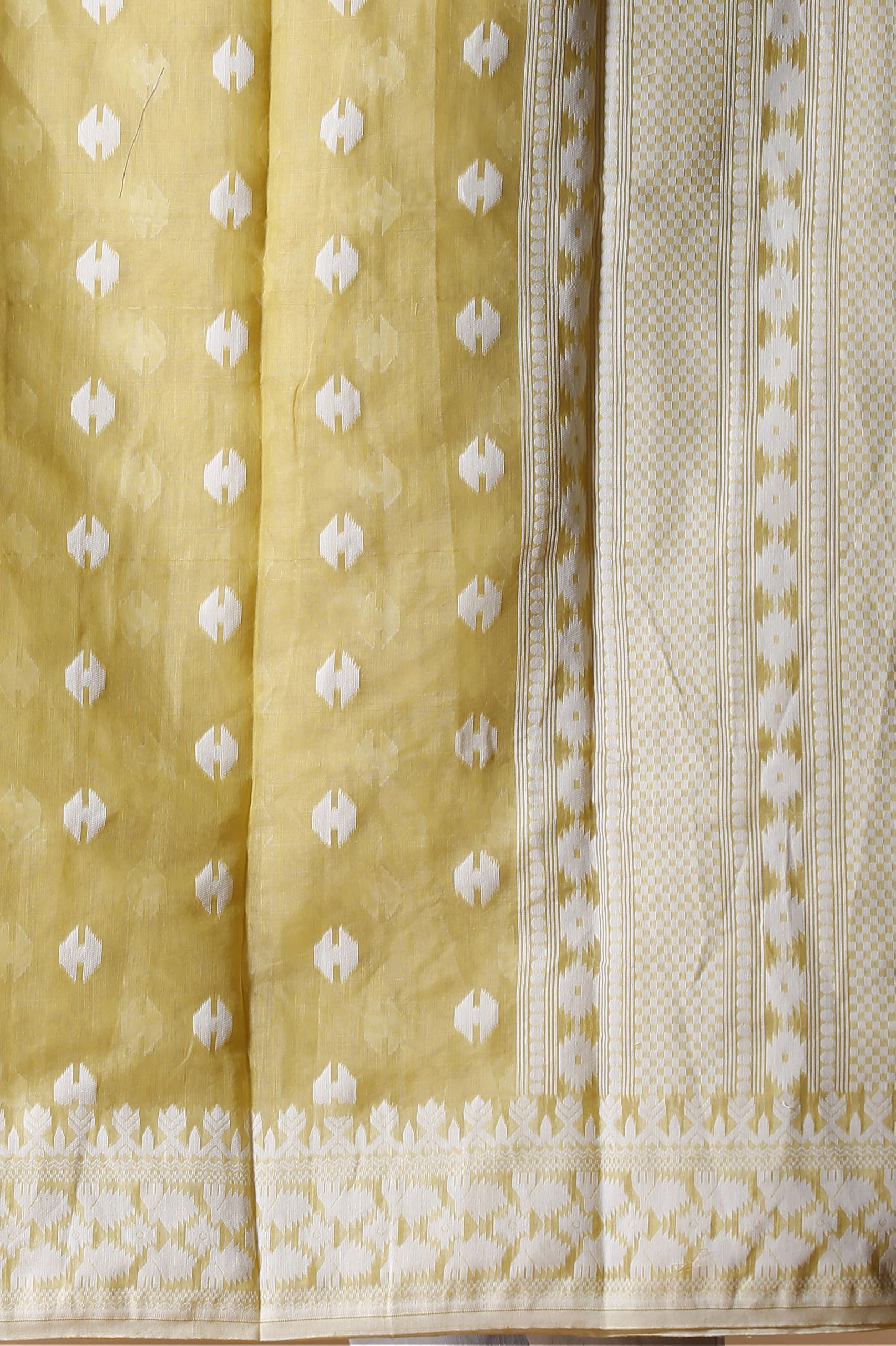 Oishani Saree Ghor Women's Traditional Bengal Cotton & Silk Soft Jamdani Saree - Beautiful Pallu Design Work - 5.5 metres Saree Without Blouse Piece_Pale Yellow