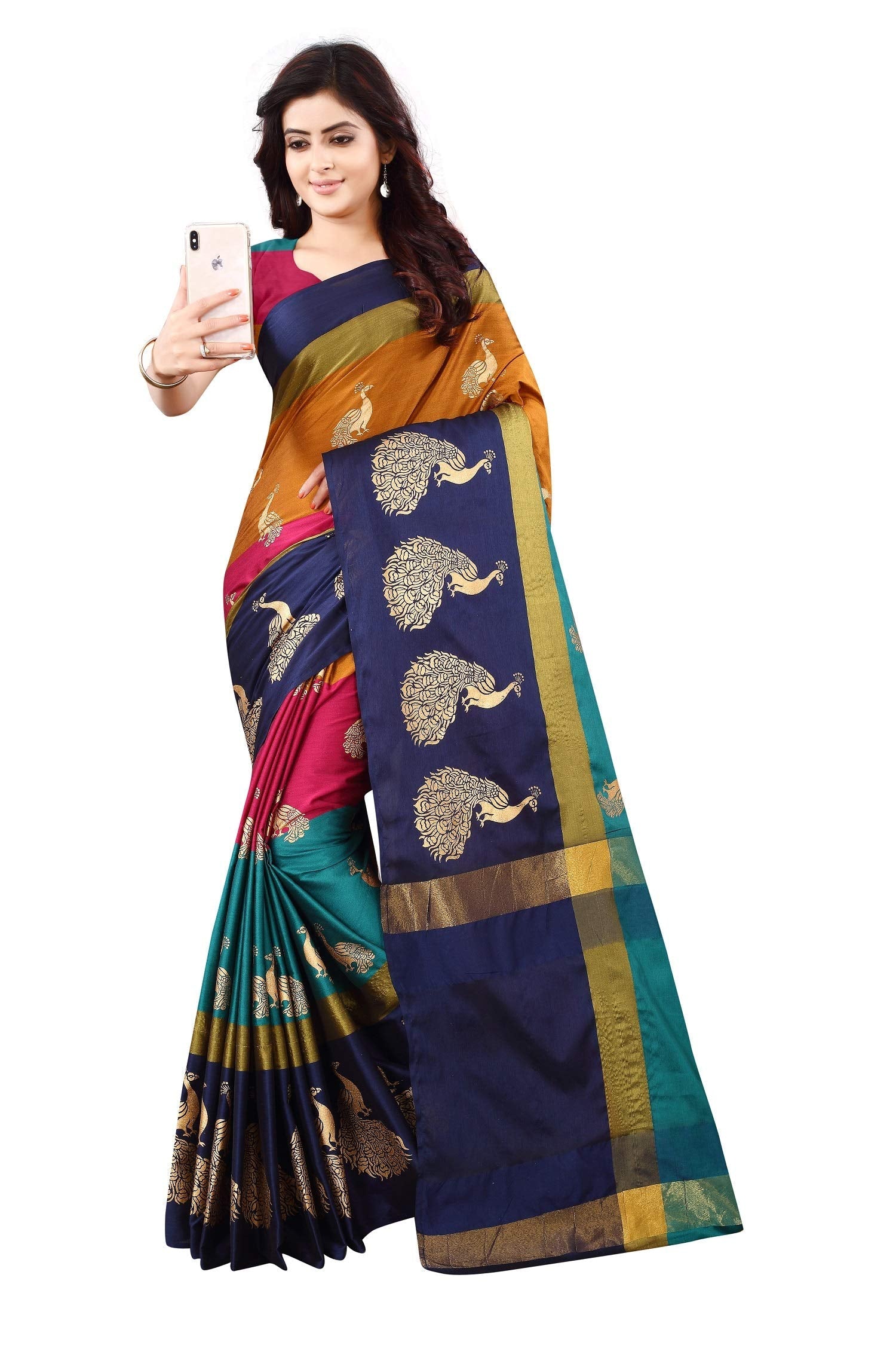 OM SAI LATEST CREATION Women's Z-card Cotton silk Foil Printing Lining Saree for Women Half Sarees Under 349 2020 Beautiful for Women Saree With Blouse Piece(Free Size) (Multi-Coloured)