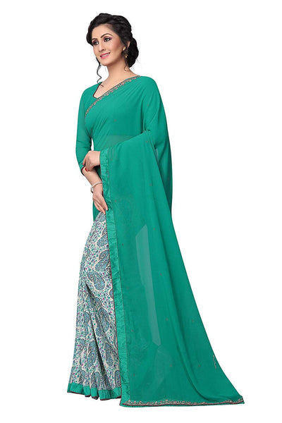 RAJESHWAR FASHION WITH RF Women's Half &Half Georgette Printed Saree With Lace & Blouse(A29 FIROZI RAMA_Free Size)