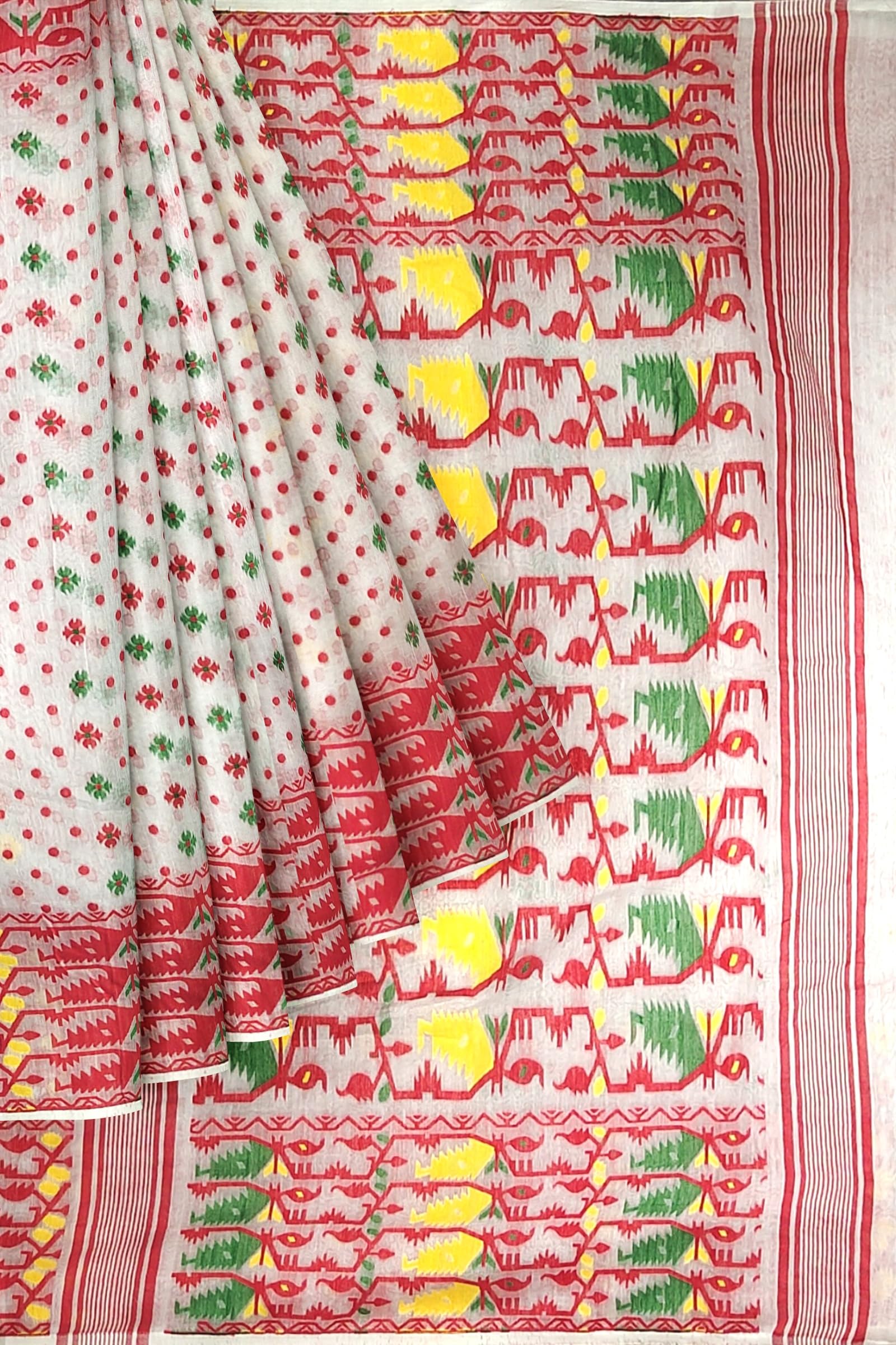 RONGORANI Bodhuboron Cotton Silk Jamdani Saree, Without Blouse Piece
