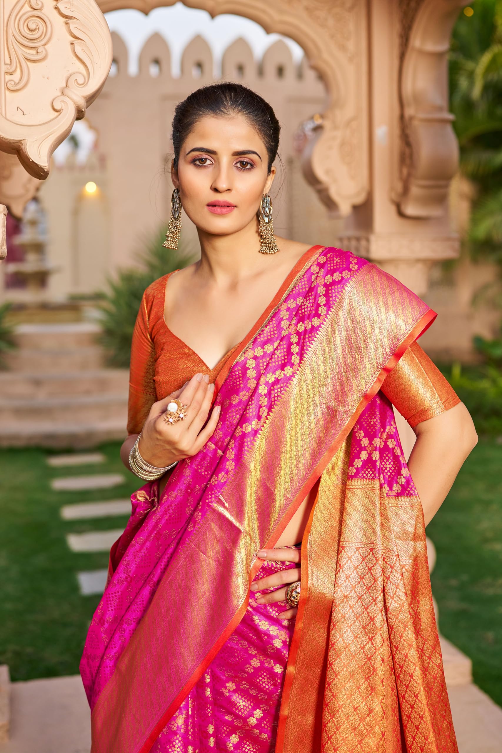 SWORNOF Women's Patola Silk Saree With Unstitched Boluse Piece (RANI)