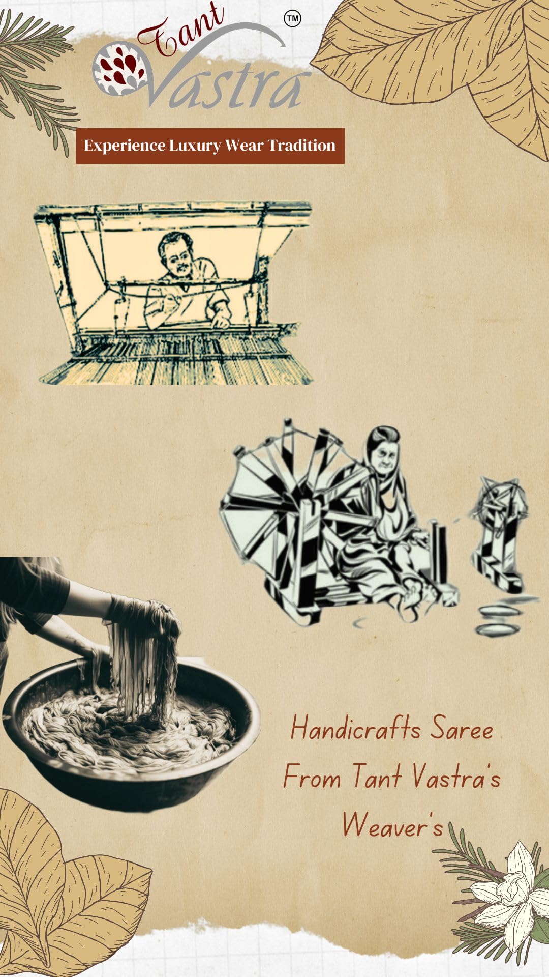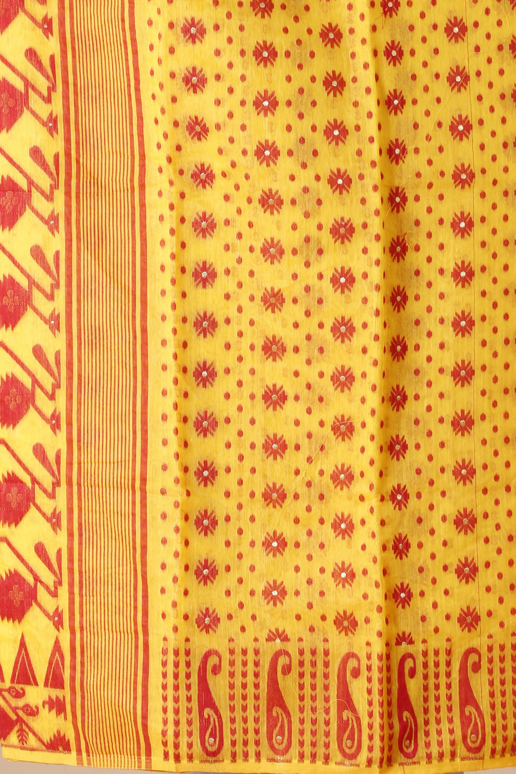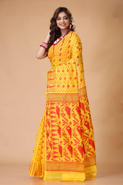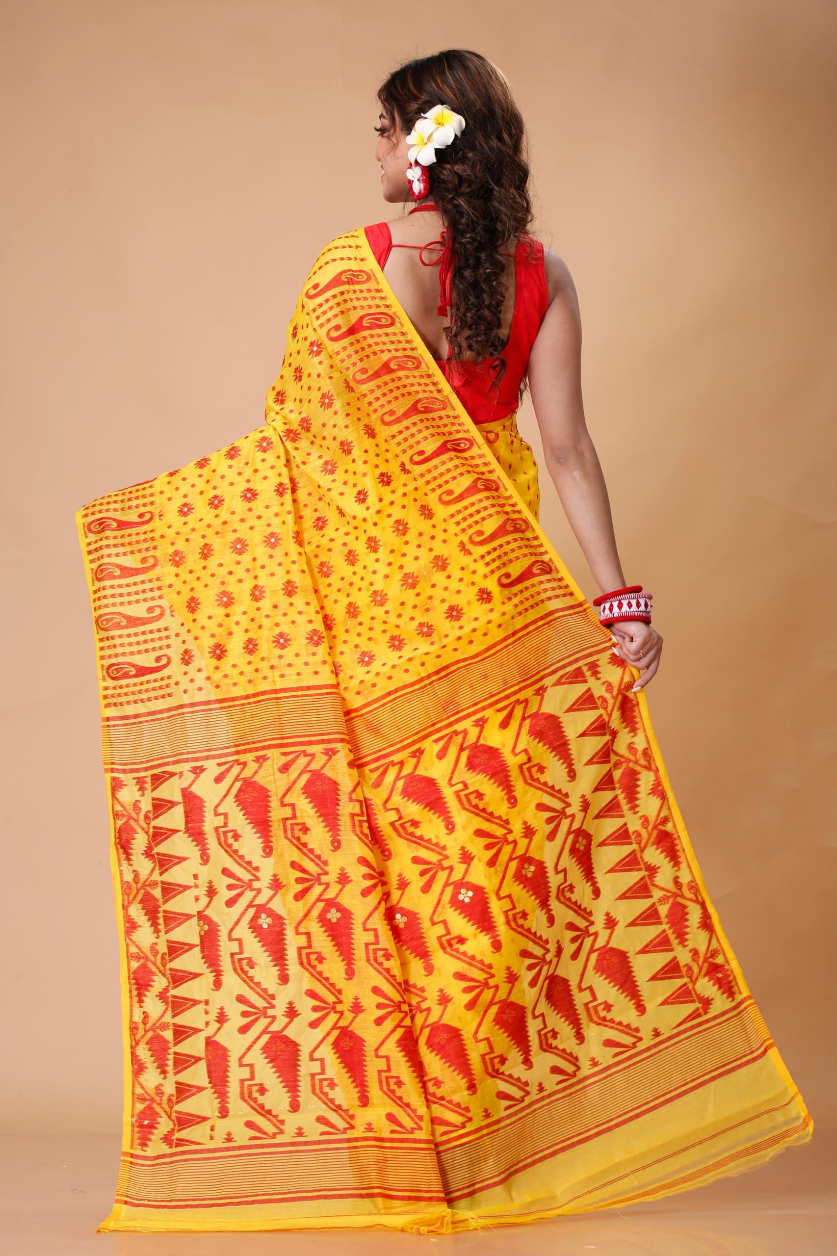 Tant Vastra Stylish Soft Cotton Silk Jamdani Saree For Women, Without Blouse Piece (Yellow)