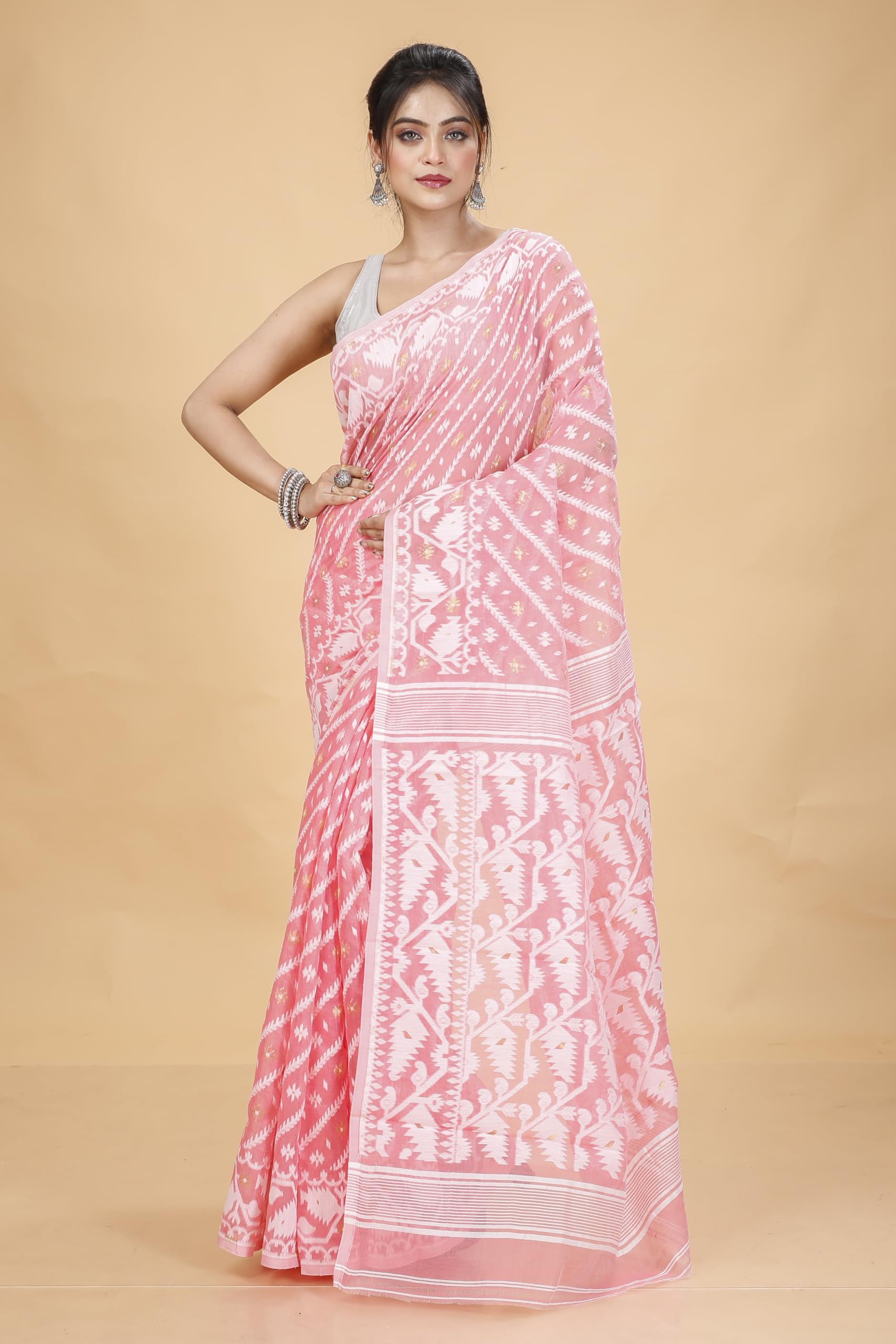 Tant Vastra Women’s Soft Resham Dhakai Karat Jamdani Saree without Starch And Without Blouse Piece (Peach)