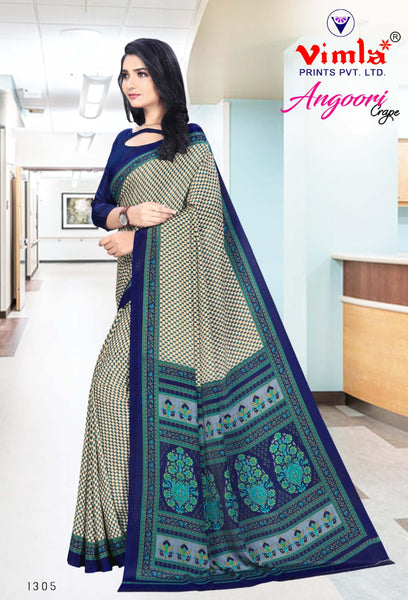 Vimla Women's Beige Crepe Silk Uniform Saree with Blouse (Beige; 1305_AC_Free Size)