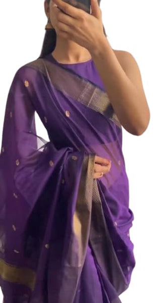 WILLFE Women's Cotton Soft Silk Jamdani Sarees With Attach Unstitched Blouse Piece (Purple)