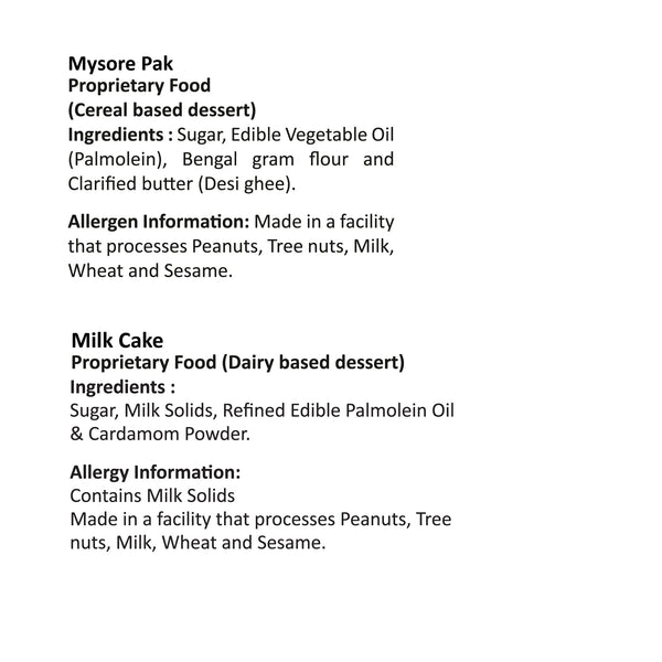 Mysore Pak Signature 400gm & Milk Cake Premium 400gm