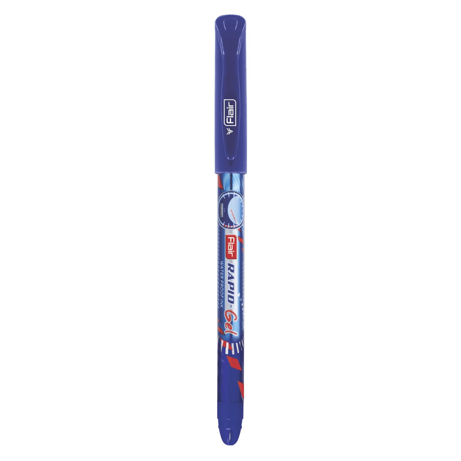 FLAIR Super Smooth Rapid Gel Pen | Tip Size 0.5 mm | Elegant Metal Clip with Soft Rubber Grip | Waterproof Ink for Smudge Free Writing | Ideal for School, Collage & Office | Blue Ink, Jar Pack of 25