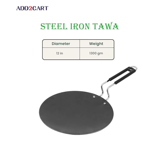 Pre-Seasoned Iron Concave Tawa with Silicone Grip for Dosa/Chapathi, 30.48cm/9 in, 0.8 kg, Gas Compliant, 100% Pure & Toxin-Free, Uncoated in Black