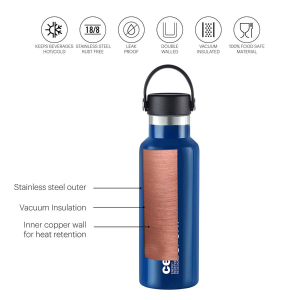 Introducing the Aqua Bliss Flask, an 1100ml Vacusteel Water Bottle, designed to revolutionize your drinkware collection. Available in a vibrant spectrum of colors, including black, blue, orange, red, and violet, this stainless steel flask not only adds a touch of style but also ensures your beverages stay perfectly hot or refreshingly cold with its advanced vacuum insulation technology. Crafted from food-grade stainless steel, the Cello 1100ml Vacusteel Flask guarantees both durability and beverage safety, making it your go-to choice for versatile and reliable hydration, regardless of the season or occasion.