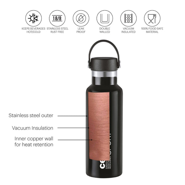 Introducing the Aqua Bliss Flask, an 600ml Vacusteel Water Bottle, designed to revolutionize your drinkware collection. Available in a vibrant spectrum of colors, including black, blue, orange, red, and violet, this stainless steel flask not only adds a touch of style but also ensures your beverages stay perfectly hot or refreshingly cold with its advanced vacuum insulation technology. Crafted from food-grade stainless steel, the Cello Black 600ml Vacusteel Flask guarantees both durability and beverage safety, making it your go-to choice for versatile and reliable hydration, regardless of the season or occasion.