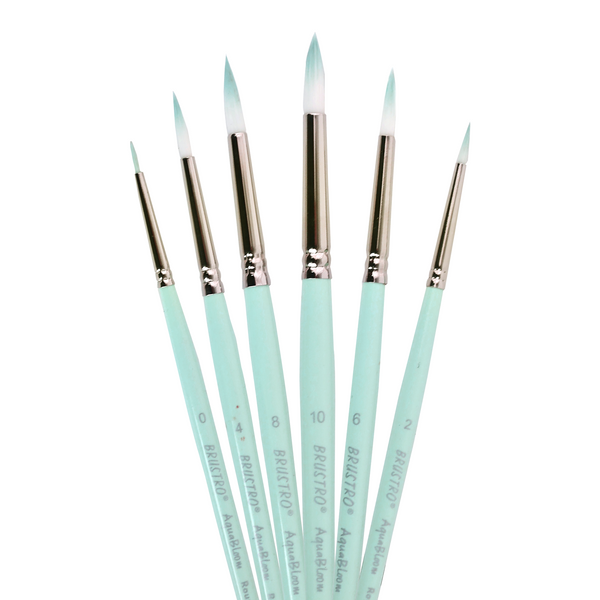 BRUSTRO AquaBloom Artist's Paint Brushes | Round | Set of 6 - Sizes (0, 2, 4, 6, 8, 10) | Wooden Handle, Comfortable Grip, Synthetic Bristles, Ideal for Watercolour, Gouache, Painting.