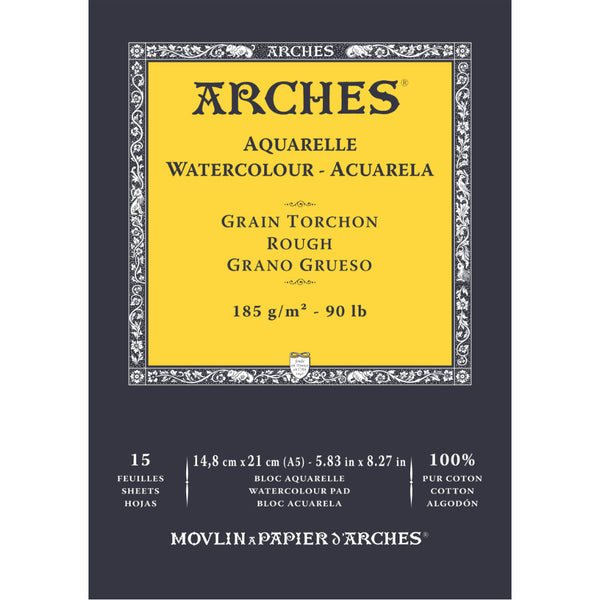Arches Watercolour 185 Gsm Rough Natural White A5 Paper Pad- 15 Sheets