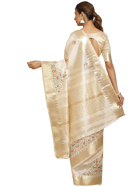 arriva fab Women's Kasavu Cotton Blend Saree With Blouse Piece (Riva1698__White)