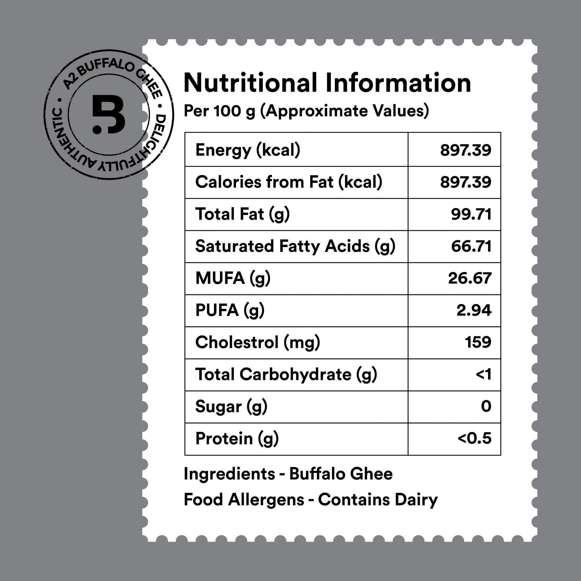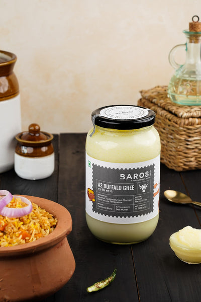 - 100% NATURAL & PURE: Barosi Buffalo Ghee is made using the fresh & pure milk of the grass-fed desi Buffalos reared on our farm. Our Ghee is made in small batches to assure freshness & quality. The Buffalos are neither injected with hormones nor artificially inseminated to enhance milk production.