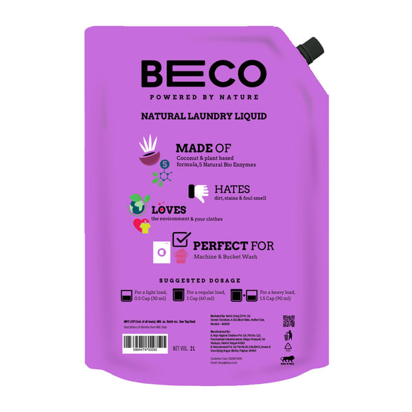 - 🌳 CLEANS WITH NATURAL INGREDIENTS- Our Top Load laundry liquid is 100% natural with coconut-based surfactants and five natural bio-enzymes to effectively remove all kinds of tough stains, dirt, smudges, and stench from your clothes.