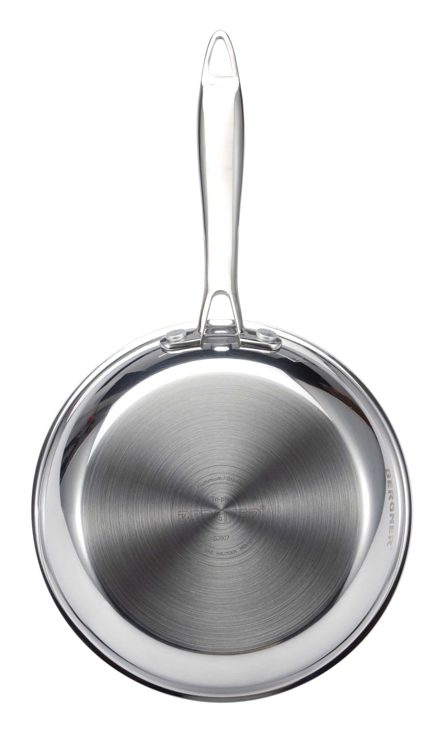BERGNER Argent TriPly 20 cm Frypan/Steel Pan, Scratch Resistant, for Spice Tempering/Seasoning, Stay Cool Long Handle, Mirror Finish, Induction Ready, 5-Year Warranty by Bergner