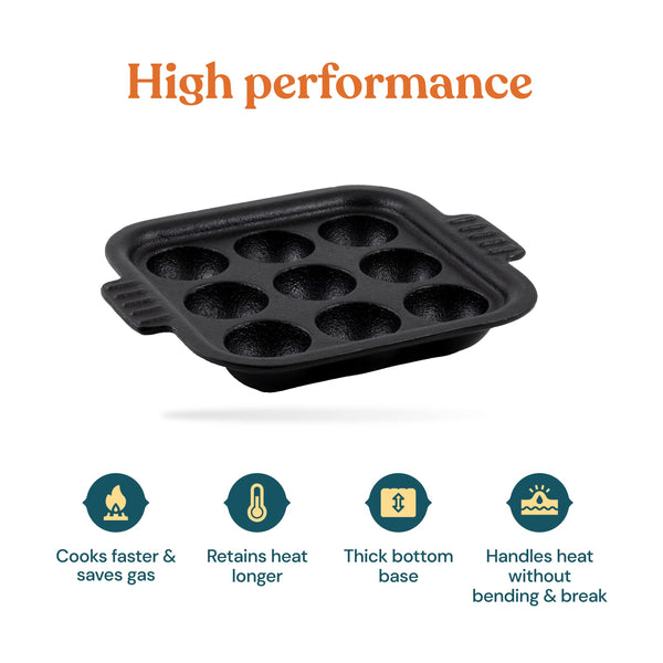 - ๐๐ฒ๐ฎ๐น๐๐ต๐ ๐๐ผ๐ผ๐ธ๐๐ฎ๐ฟ๐ฒ: Cast iron paniyaram pan is far healthier than nonstick and other types of cookware. It enriches the iron content in crispy and fluffy naturally and reduces the consumption of butter or oil.