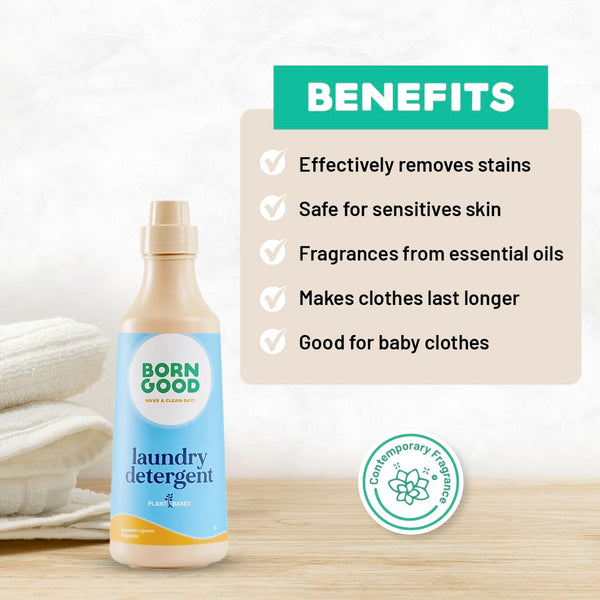 - CERTIFIED GOODNESS: USDA Certified BioBased Product with a score of 72% showing higher biodegradability. Traditional detergents typically contain 40% organic carbon. BORN GOOD IS: Made in india, 2x plastic positive. Cruelty Free Certified
