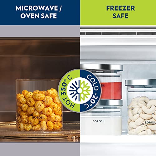 Borosil Classic Glass Jar, Air-Tight Storage Container For Kitchen, Glass Jar For Storing Spices, Snacks, Grains, Dals, Set of 2 (600 ml each), Clear