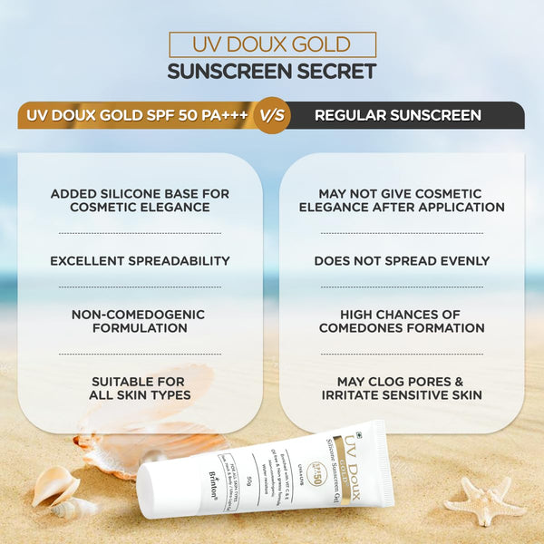 Brinton UV Doux Gold Silicone Sunscreen Gel SPF 50 pa+++ UVA/UVB With Broad Spectrum, Water Resistant Best SPF Sunscreen For Women, 50 g