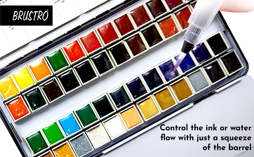 - Easy to squeeze barrel: control the ink or water flow with just a squeeze of the barrel. Blend with water or add ink to barrel for fast, easy, and fun painting