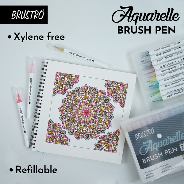 • Watercolour brush pen with water-based ink • Soft and Flexible brush tip • Refillable • Non-toxic • Odourless • Xylene free Brush tip size: 1-4.5mm