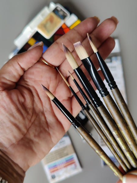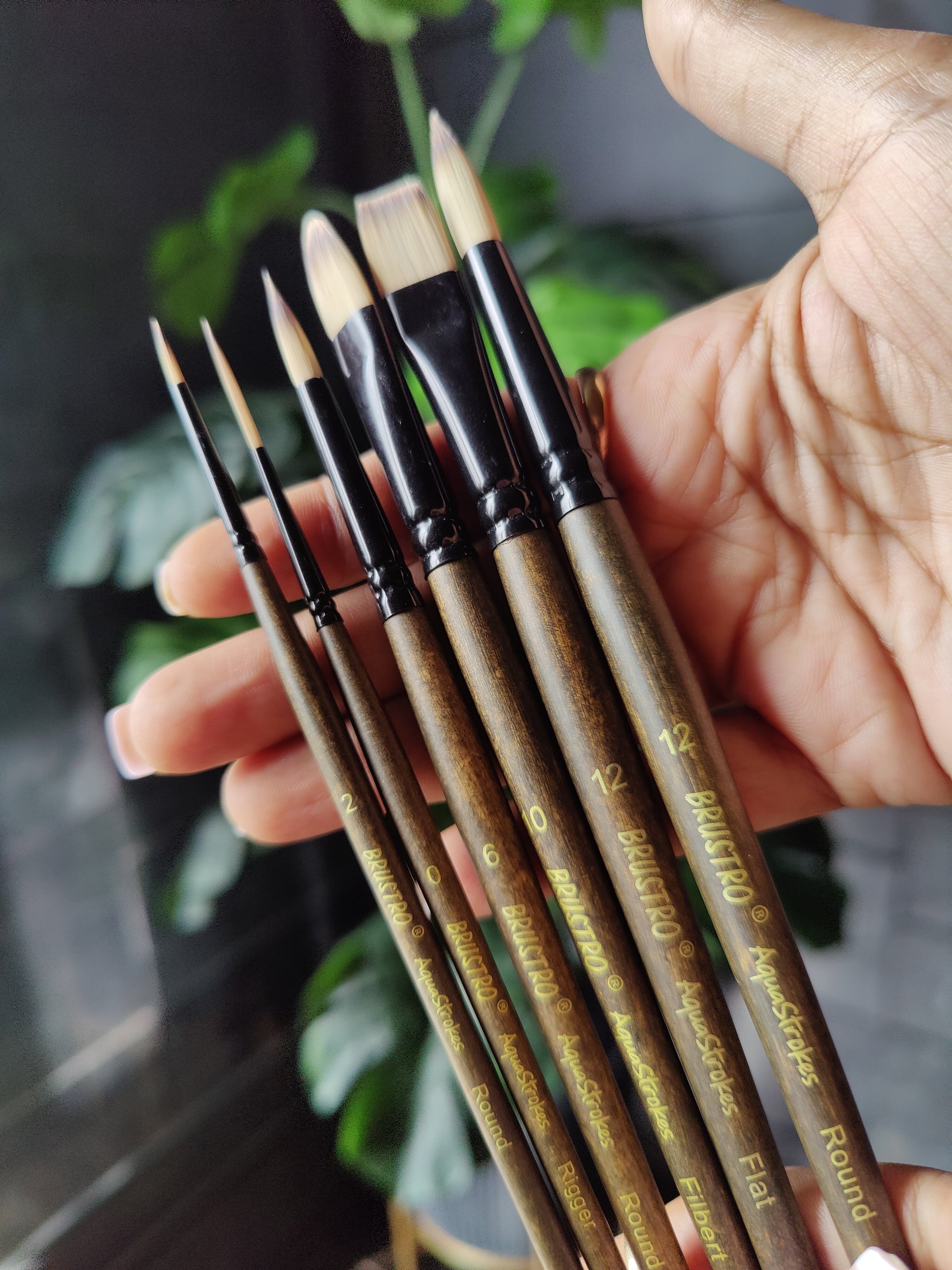 BRUSTRO AquaStrokes Artist Brushes | Set of 6 | Ideal for Watercolour, Gouache, Acrylics, Oil Brush, Synthetic Bristles, Wooden handle | Made for Students and Professionals Artists