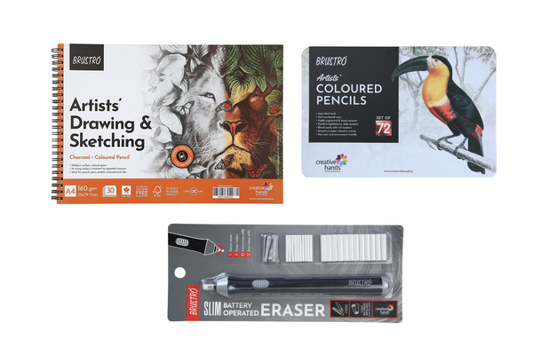 Brustro Artists’ Colour Pencils includes 72 vibrant shades; 4mm leads. Thick, soft wax-based cores, Highly pigmented and fade-resistant leads. Unsurpassable light-fastness. Break-resistant. Blends easily, smooth, rich laydown.