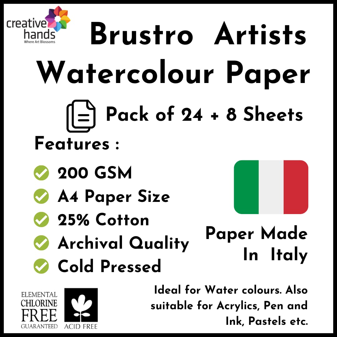 - Brustro Artists Watercolour Paper, A4 Size, 200 GSM, 25% Cotton CP, 12 + 4 Sheets Free (Pack of 2)