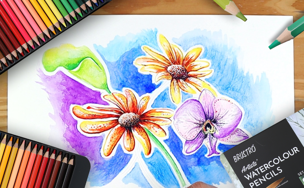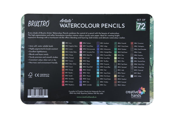 BRUSTRO Artists Watercolour Pencil Set of 72 in Elegant tin Box