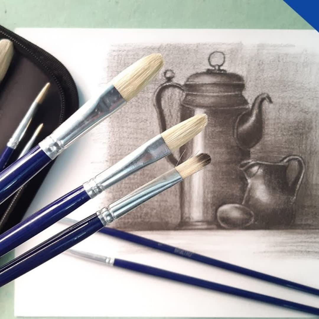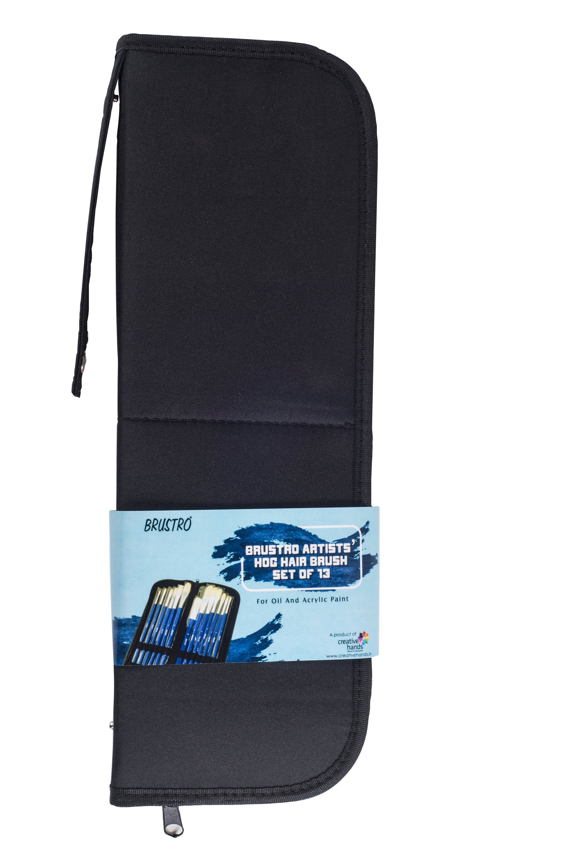Brustro Artists White Bristle Hair Brushes for Oil and Acrylic Paint with an Elegant Zippered Brush Wallet (Pack of 13)