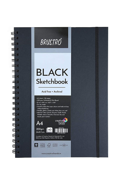 Ideal for coloured pencils, gel pens, chalk, pastels, metallic colours, gouache, charcoal, inks and acrylic paint markers , Metallic, glitters, pastels and whites show very well.Size-Size A4, 200GSM (40 Sheets) 80 Pages.