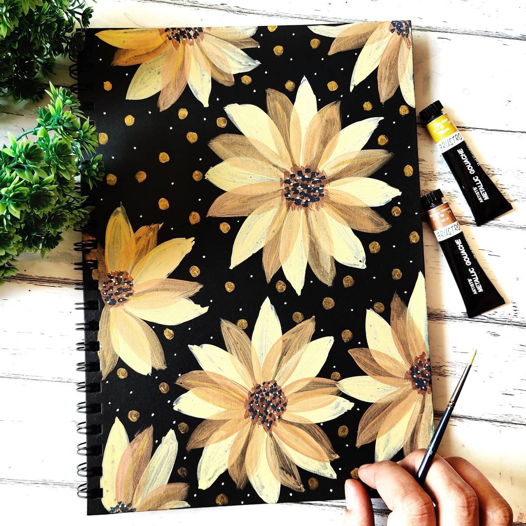 Brustro Metallic Gouache Set of 18 with Kolinsky Imitation WC Travel Brush Round Size 6 & Black Sketchbook, Wiro Bound, Size A5