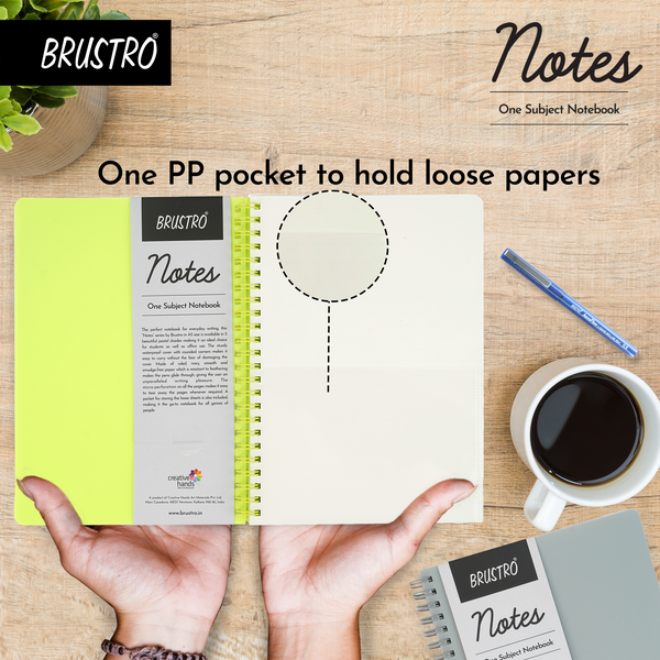 BRUSTRO Notes A5 Size, 1 Subject Ruled Notebook, 80 sheets / 160 pages, 70 gsm ivory paper, Lime Cover,
