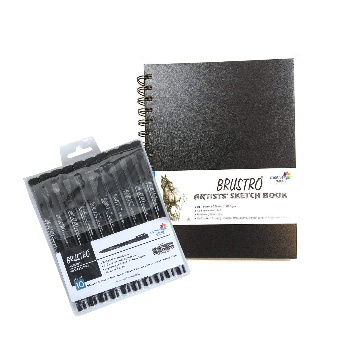 Brustro Professional Pigment Based Fineliner – Set of 10 is a technical drawing Pen with archival ink-black in colour.