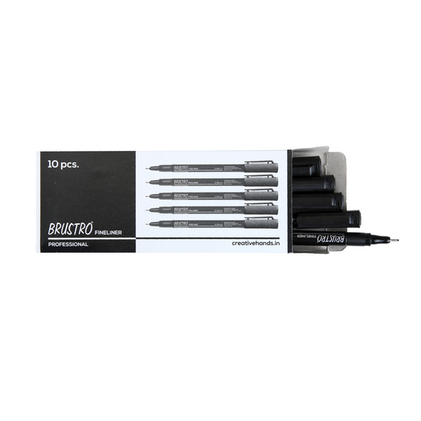 Ideal for all of your fine inking needs. These quick-drying, pigment-based ink pens are great for anime, illustration, details, fine art, design, comics, modelling, journaling and papercrafting. Experience smooth, skip-free writing and crisp ink colours that leave consistent lettering and lines every time. Brustro is a registered trademark of Creative Hands Art Materials Pvt. Ltd.